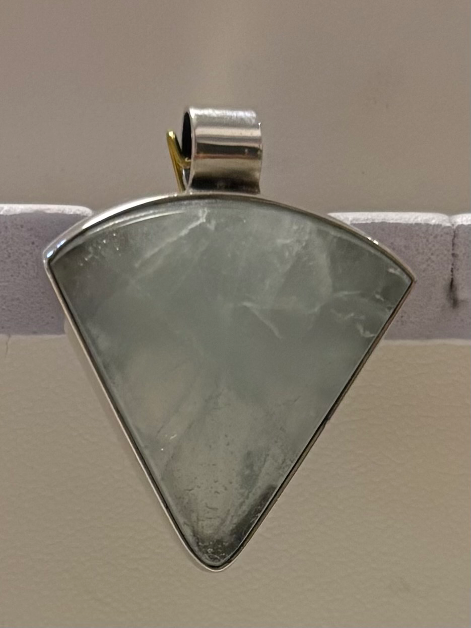 Zilveren hanger driehoek met echte aquamarijn