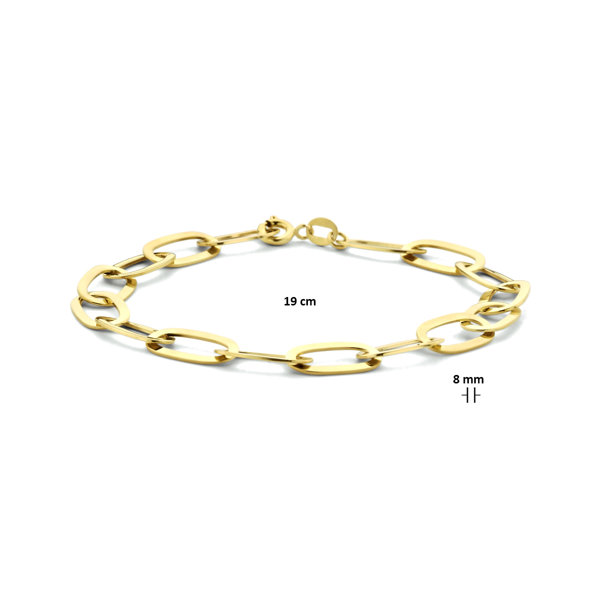 Geelgoud op 925 zilveren anker armband met een schakelbreedte van 8mm. De armband heeft een draaglengte van 19cm.