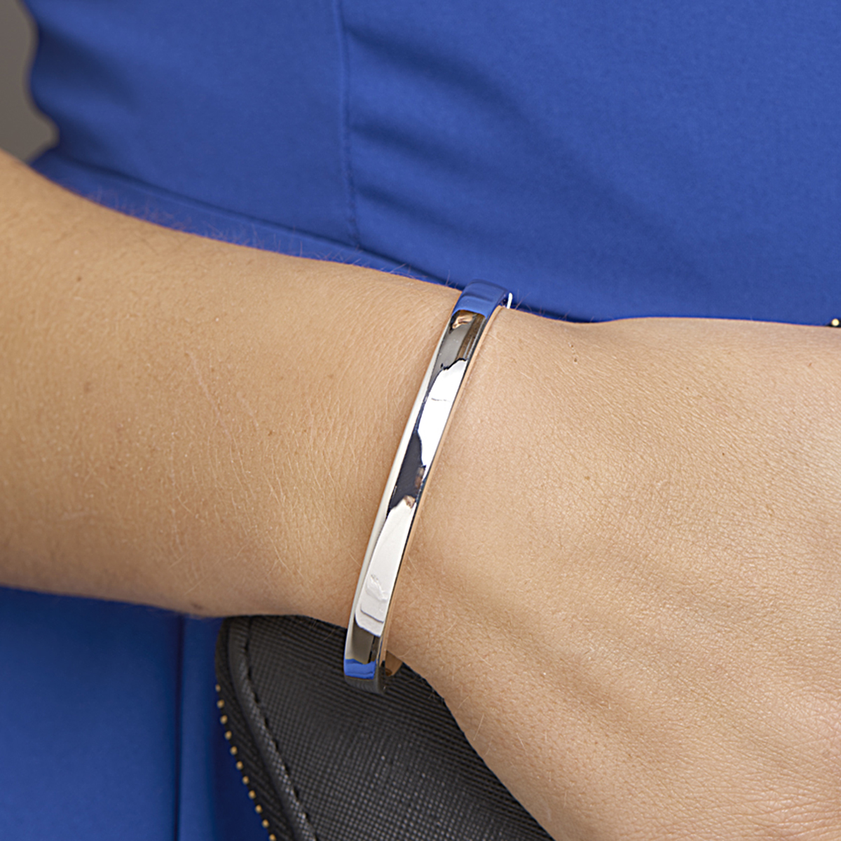 Zilveren slavenarmband met een vlakke buis en een dop-sluiting.