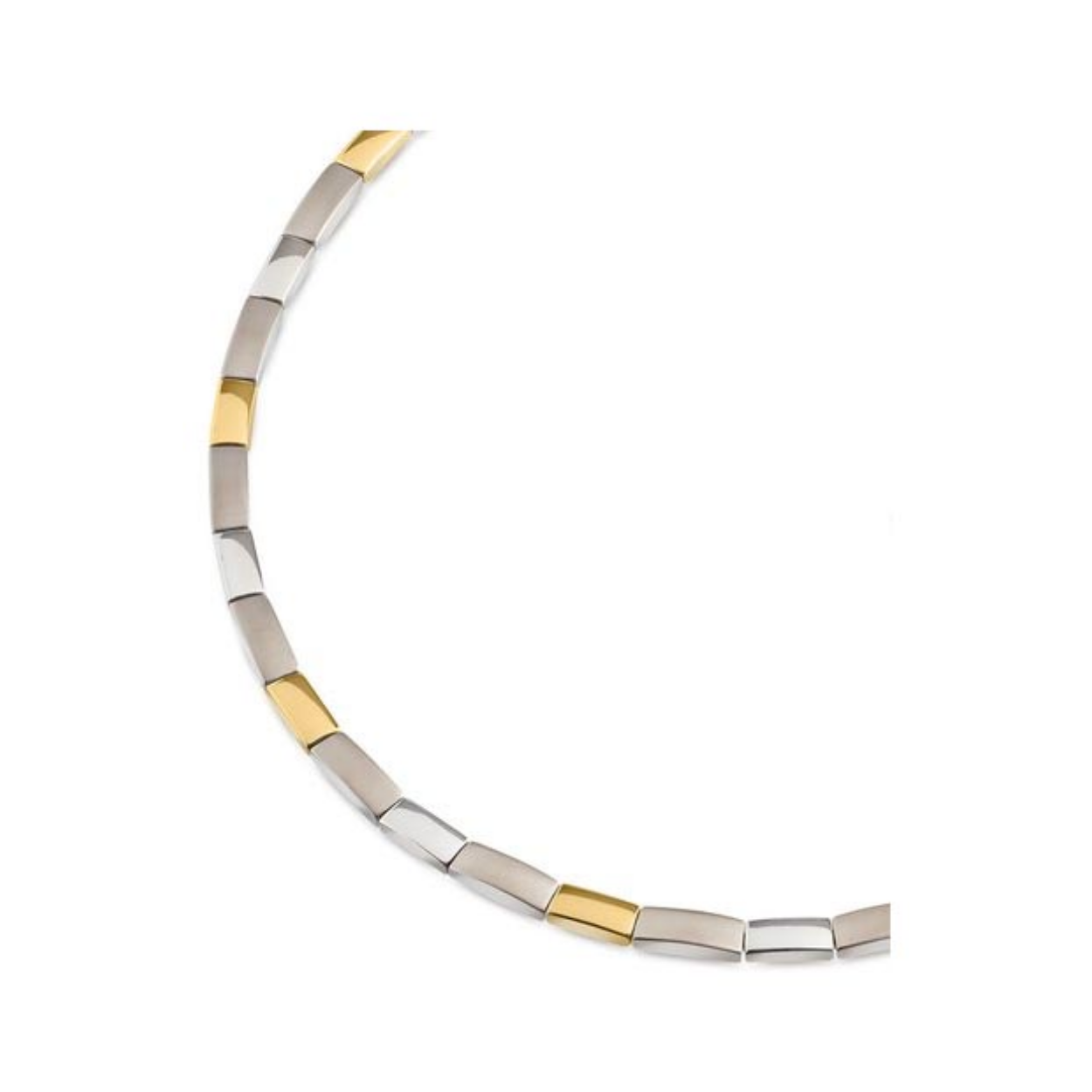Deze gematteerde ketting van Boccia Titanium heeft glanzende en goudkleurige accenten. De ketting is 48cm lang. Deze ketting geeft glans aan je outfit.