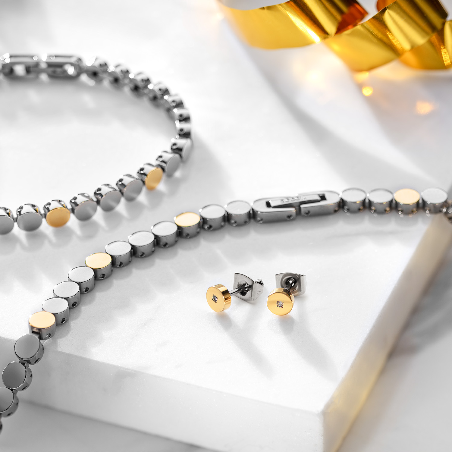 Boccia Titanium 08074-SET Bicolor Collier Oorringen Armband