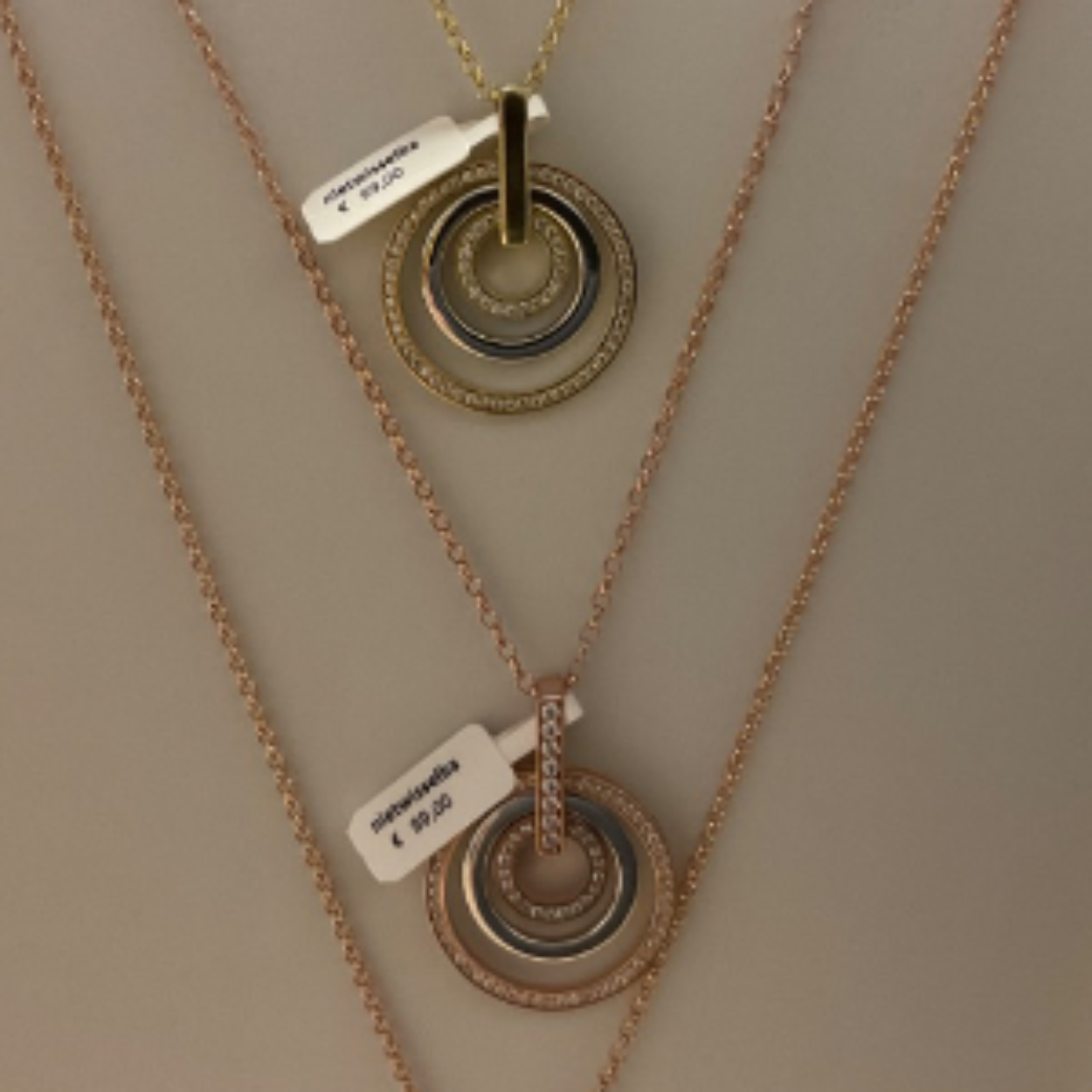 Collier met clip and rings 6xjiving clip pendant ;280091,280097, 280081 colliers;270036rhod,270038gold,270039rosé