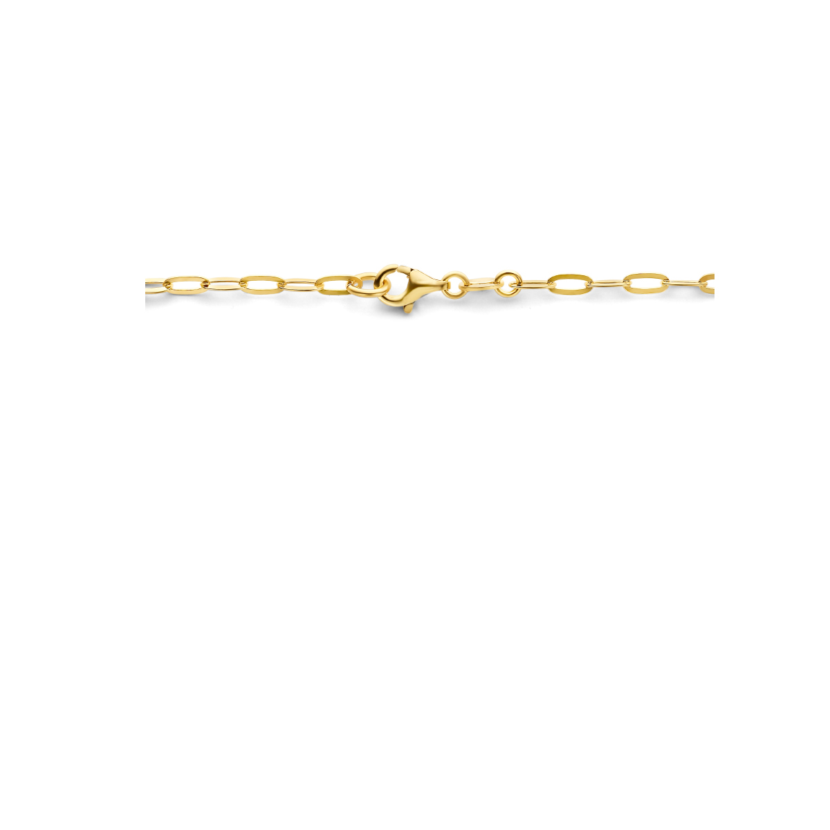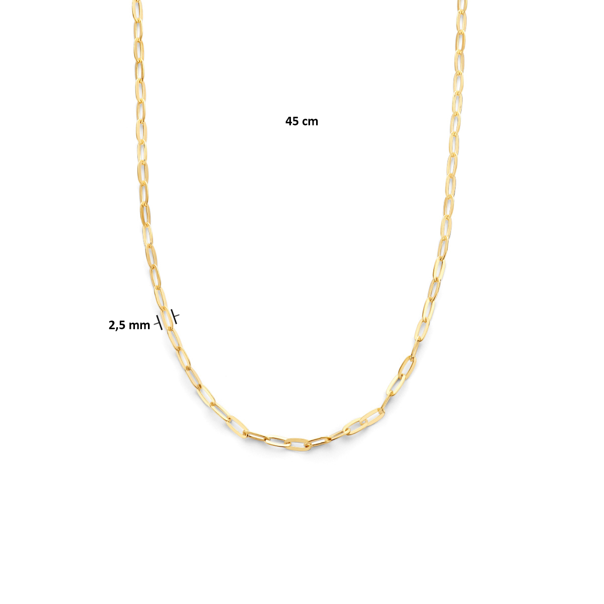 Geelgoud op 925 zilveren paperclip collier met een schakelbreedte van 2.5mm. Uitgevoerd met een karabijn sluiting. Geen garantie op plating.