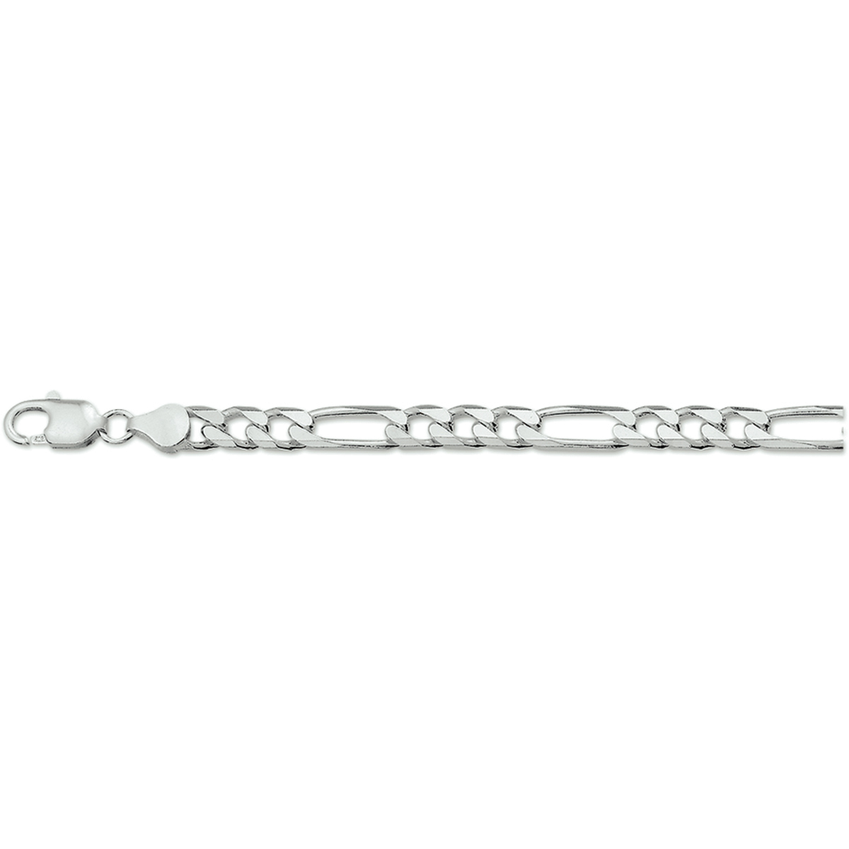 De armband is gemaakt van zilver en is zilverkleurig. Het is een sieraad voor heren.