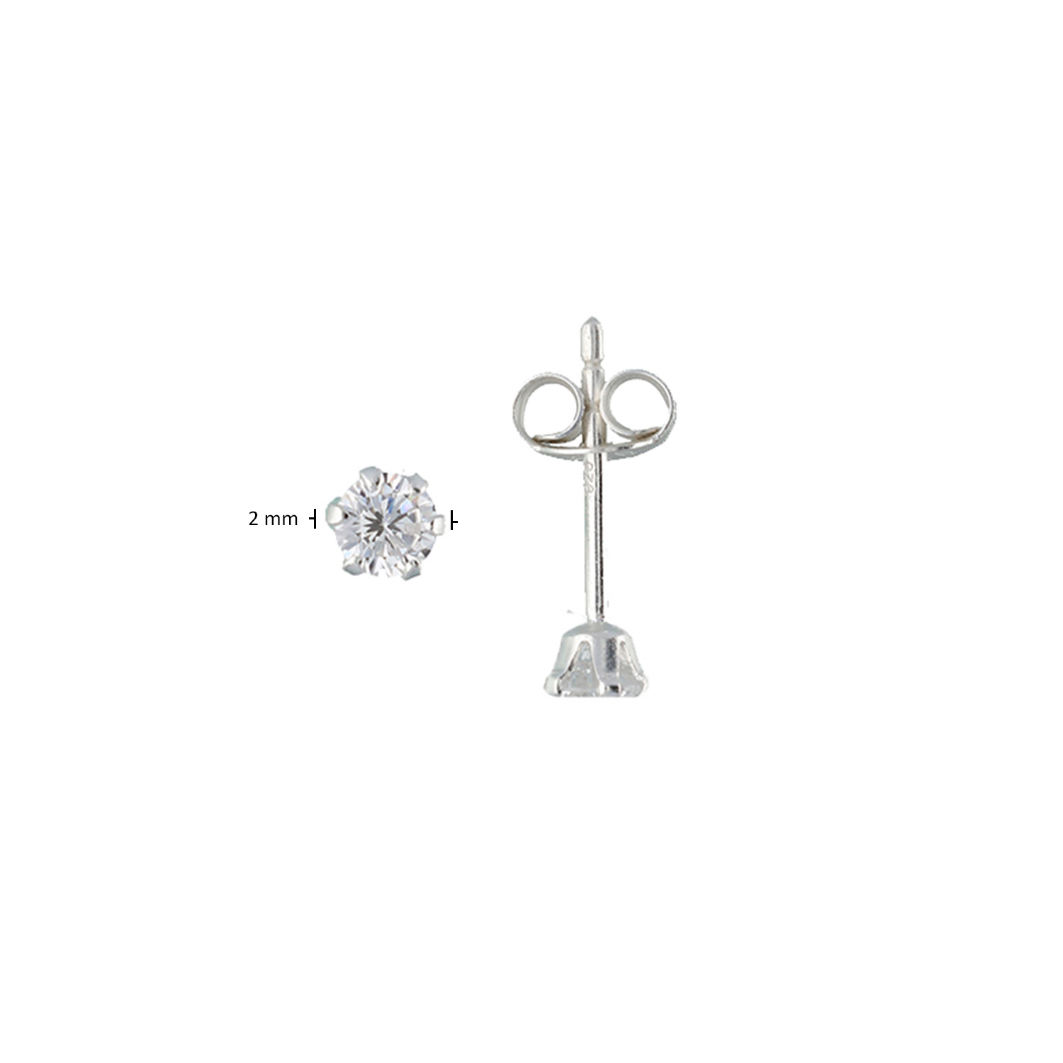 Zilveren solitair oorknopjes met zirkonia 2mm