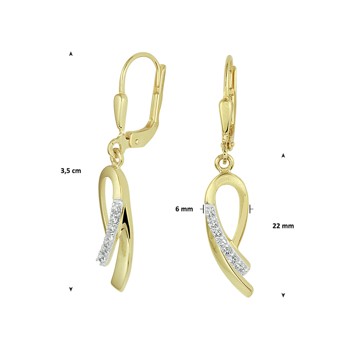 Sierlijke 14k geelgouden oorhangers uitgevoerd met een schitterende zirkonia rij. De oorhangers hebben een totale hoogte van 3.5cm.