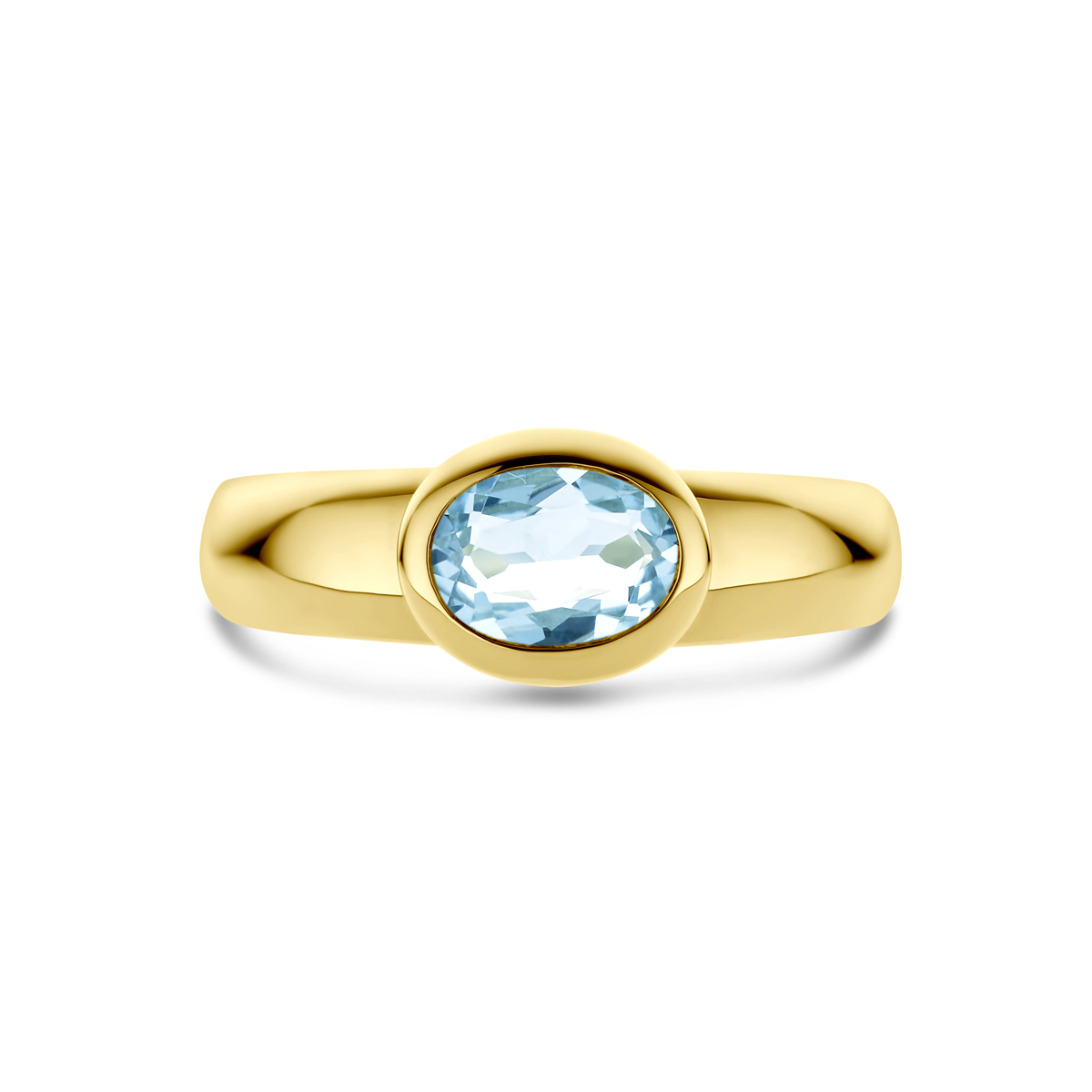 14k Geelgouden ring uitgevoerd met sky blue topaas. De ring heeft een afmeting van 7.5x9mm.