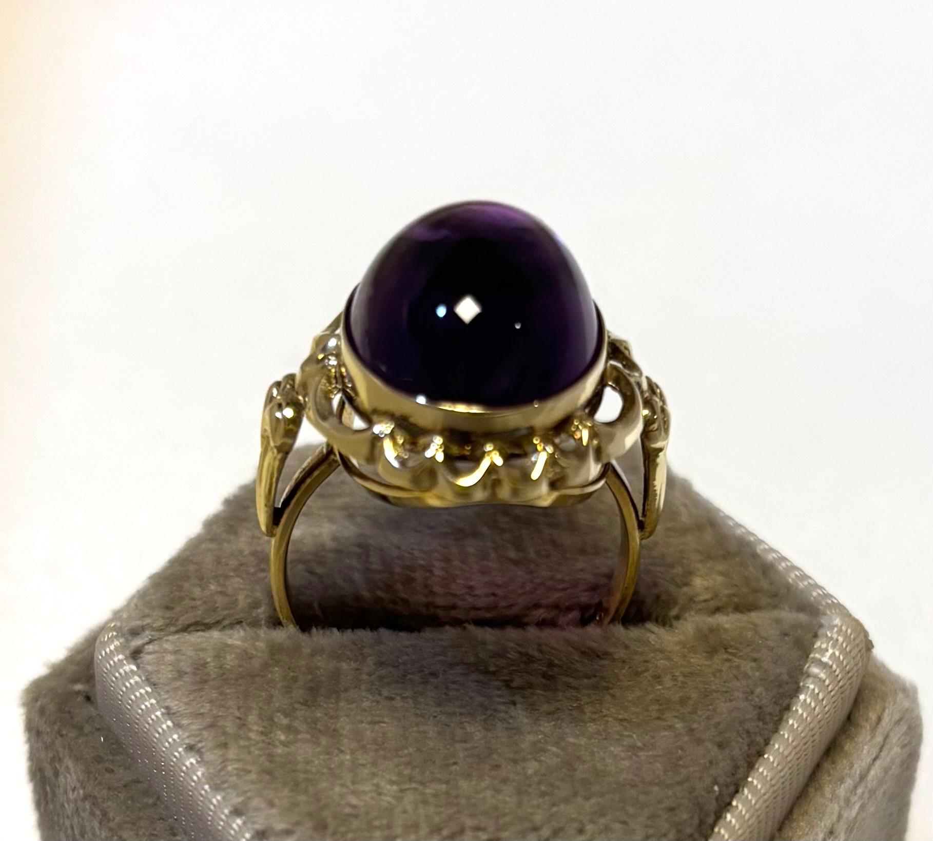 Gouden ring met amethist cabochon geslepen