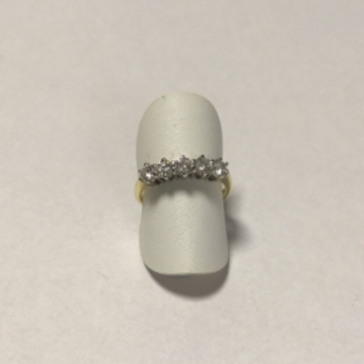 Bicolour rij ring met 5x diamant 0,15 crt, maat 17.
