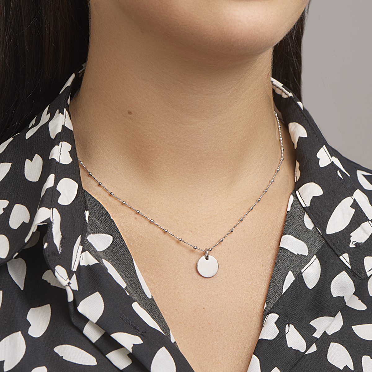 Gerhodineerd zilveren ronde graveerhanger met een diameter van 12.5mm uitgevoerd met een stevig hangoog. De hanger heeft een dikte van 0.9mm.