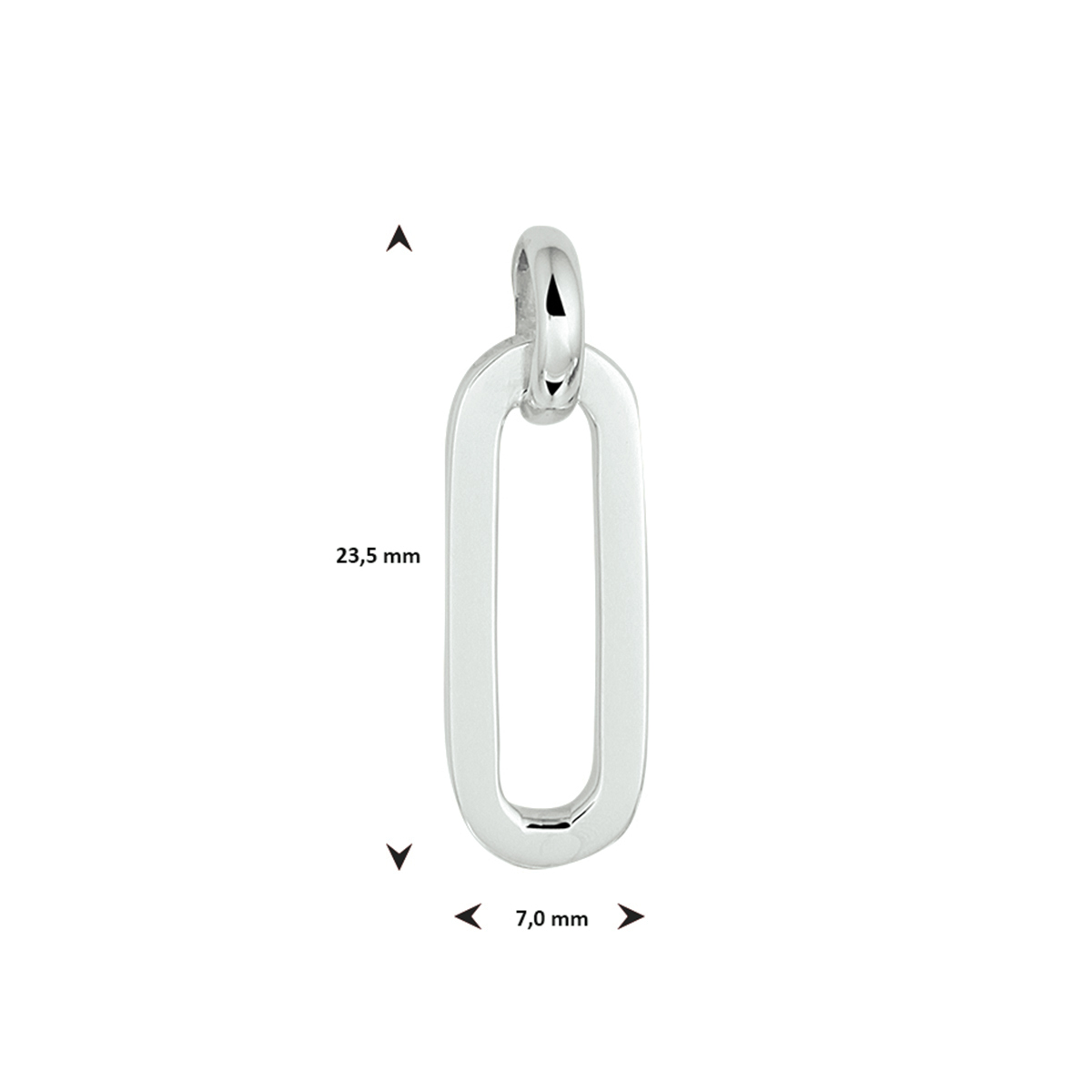 Gerhodineerd 925 zilveren hanger. De hanger heeft een afmeting van 23.5x7mm.