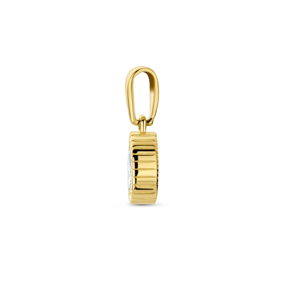 14k Geelgouden hanger uitgevoerd met zirkonia. De hanger heeft een totale hoogte van 14mm.