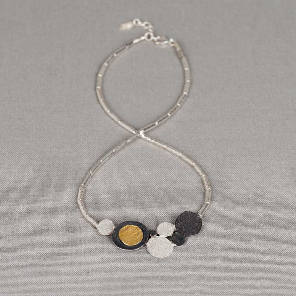 Collier gemaakt van 925 sterling zilveren buisjes in combinatie met een hanger van geoxideerd zilver en verguld. Combineer dit mooie collier met een paar oorsieraden, een armband en ring voor een complete look!