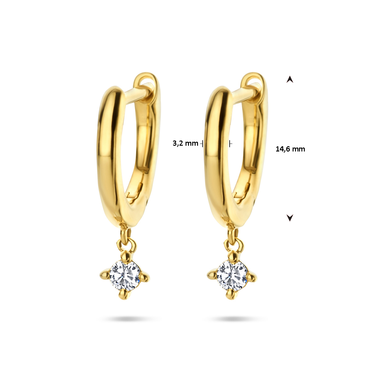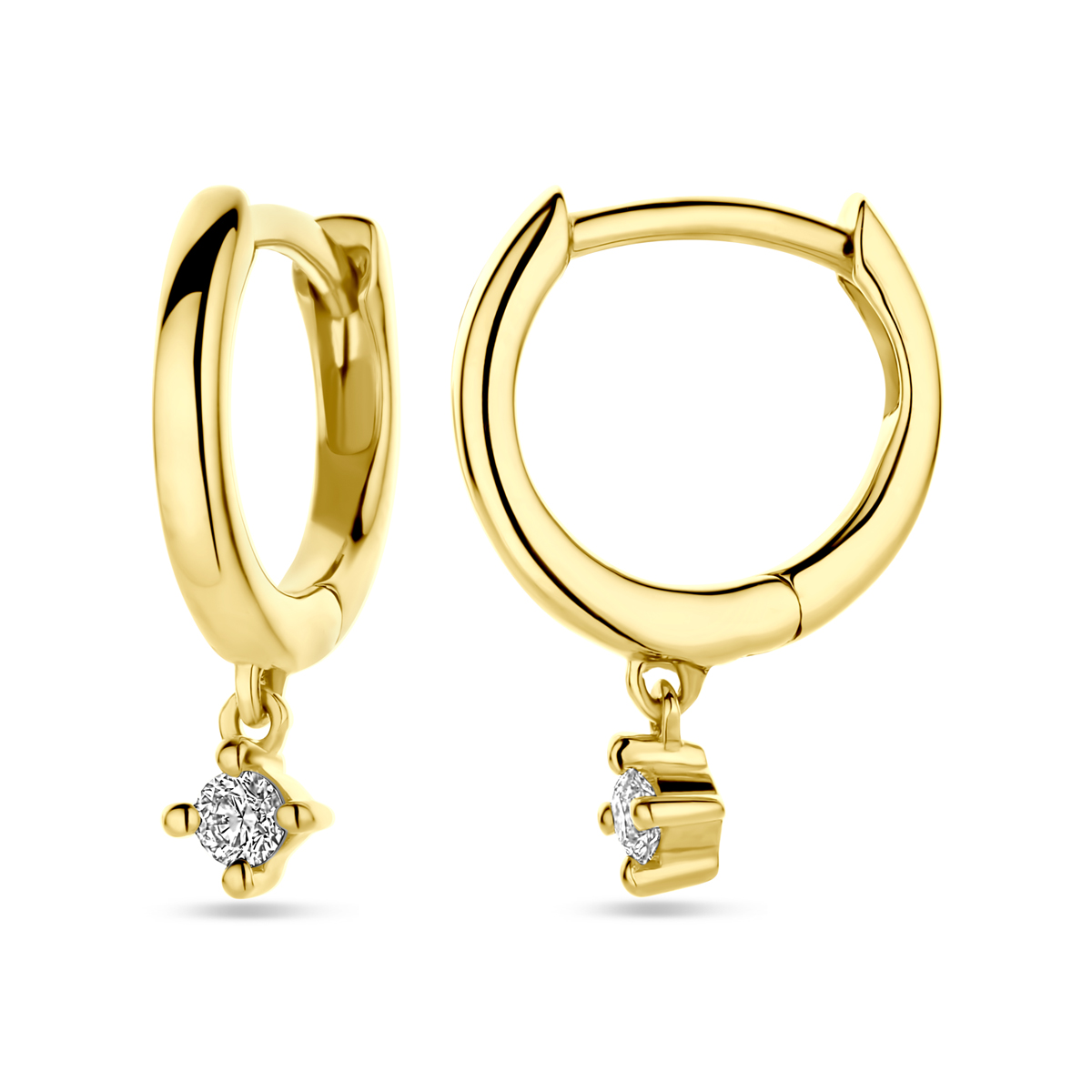 14k Geelgouden klapoorringen uitgevoerd met diamant. De klapoorringen hebben een diameter van 14.6mm.