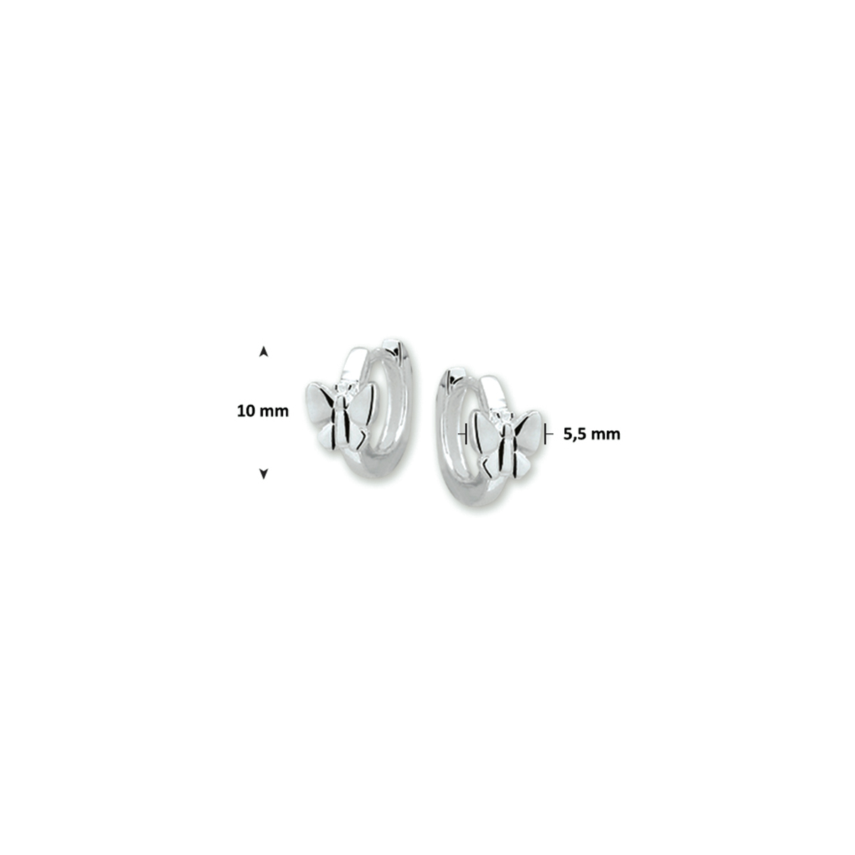 Beschrijving: Zilveren klapcreolen met een vlinder.