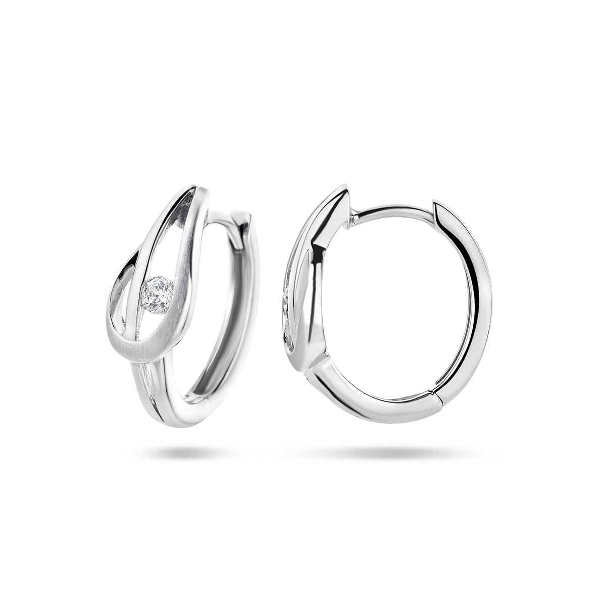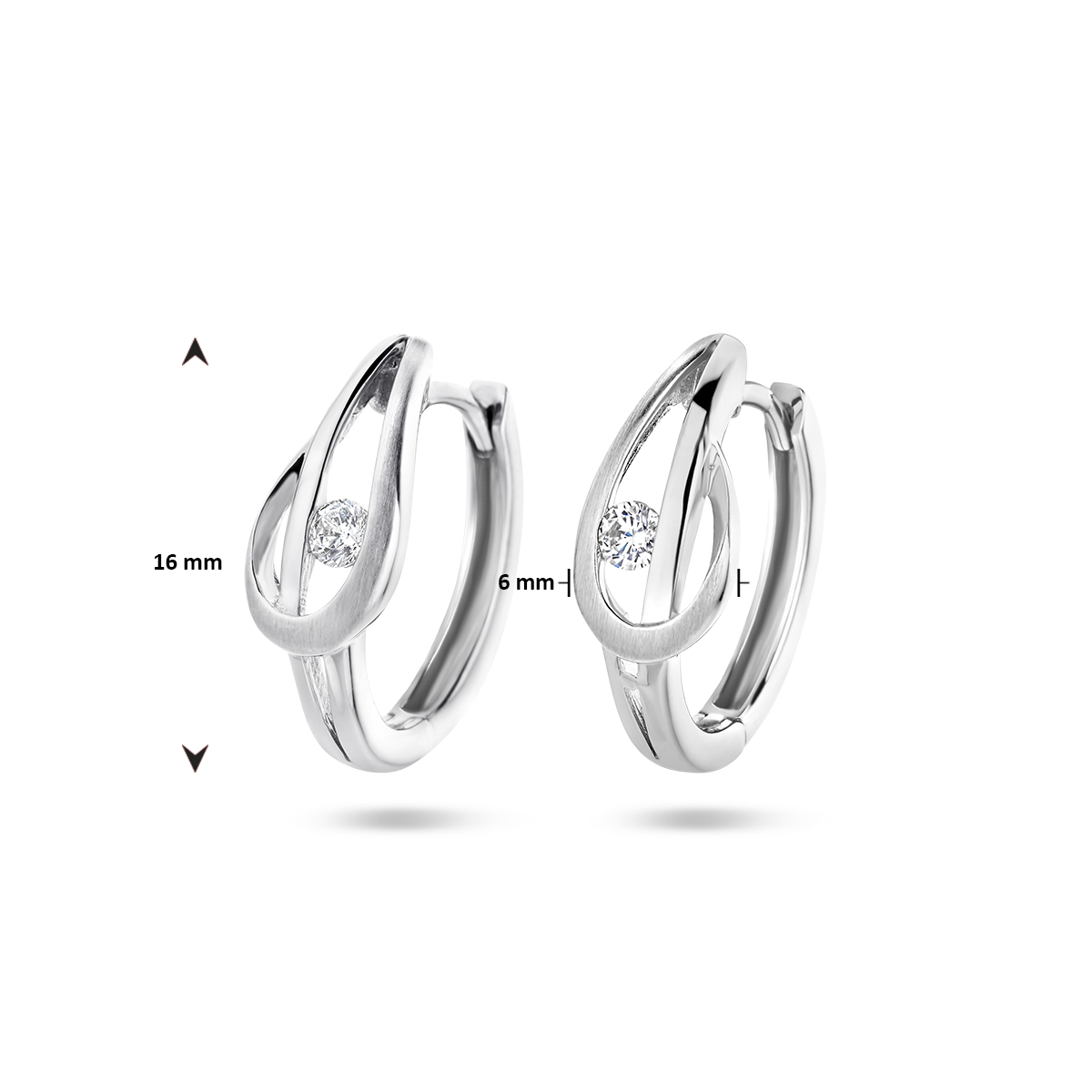 Gerhodineerd 925 zilveren klapoorringen uitgevoerd met een schitterende zirkonia. De oorringen hebben een hoogte van 16mm.