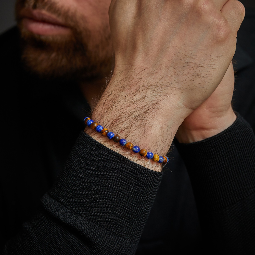 Armband van het merk Rebel & Rose. De armband heeft een hoogwaardige elastische stretch koord, met 6mm van Tijgeroog, Lapis Lazuli.