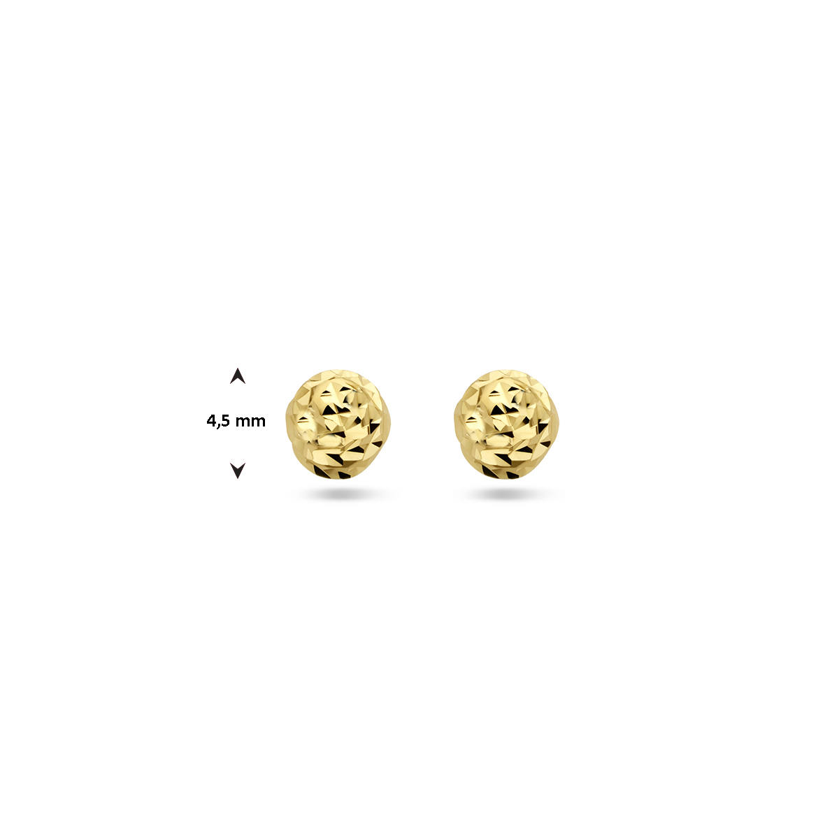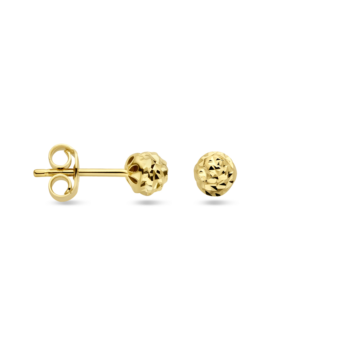14k Geelgouden bolletjes oorknoppen met een gediamanteerde afwerking.