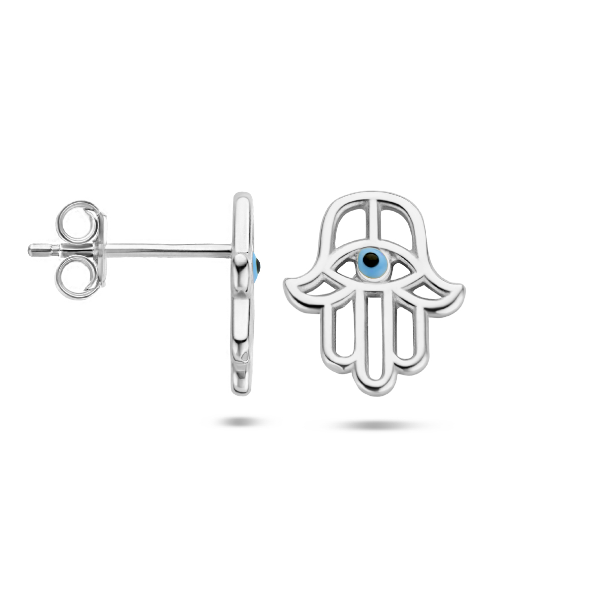 Gerhodineerd 925 zilveren oorknoppen met een Fatima handje