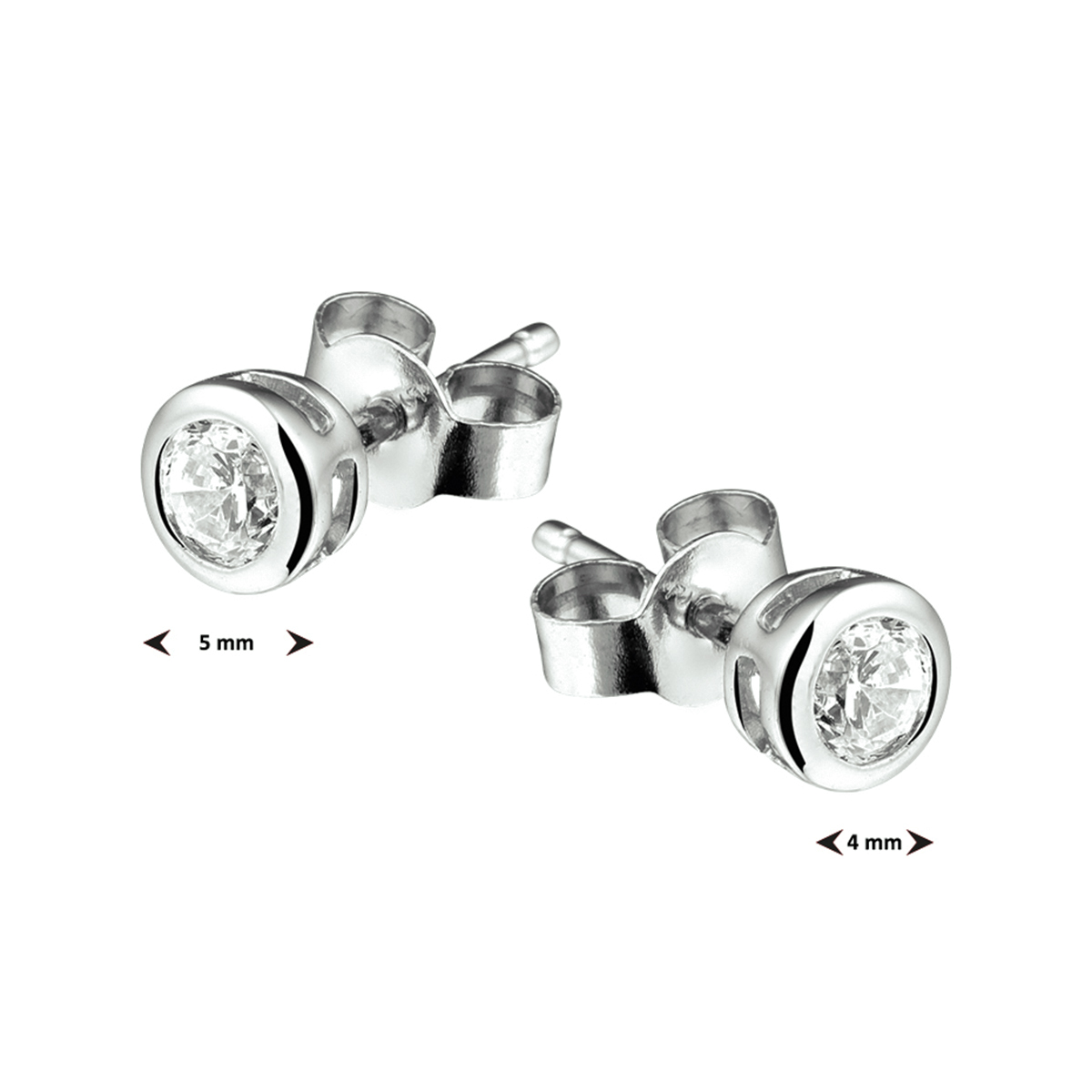 Beschrijving: Gerhodineerd zilveren oorknoppen met zirkonia.