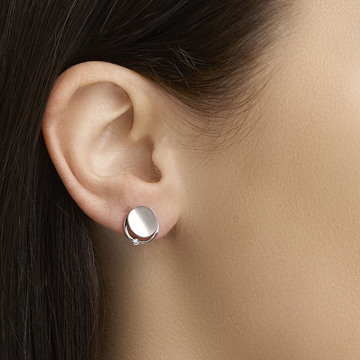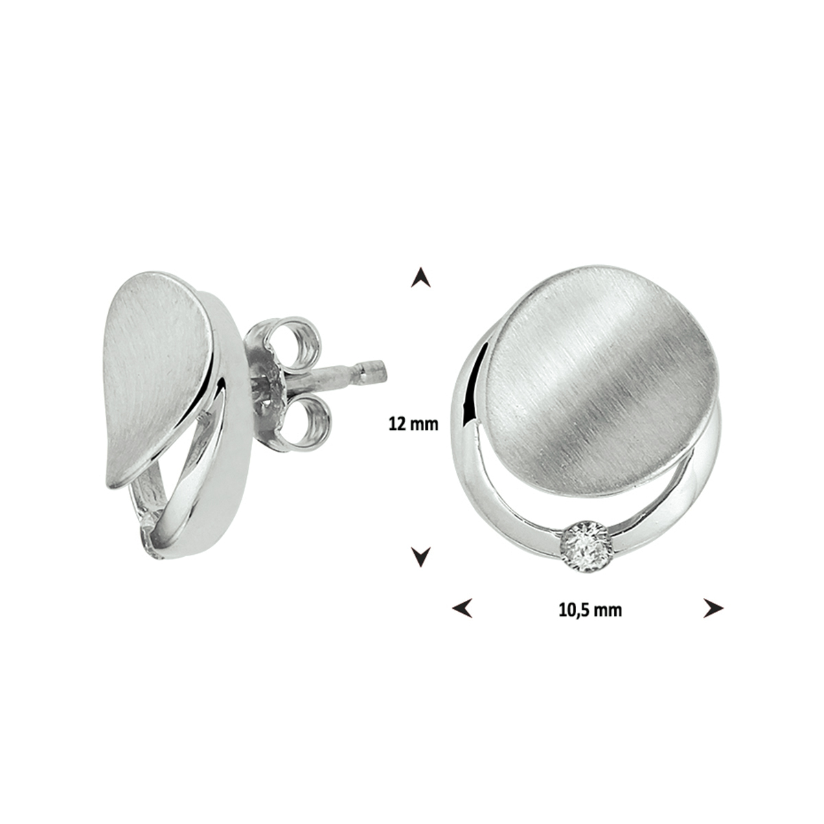 Zilveren oorsteker met 1 zirkonia, Mat/Glans afwerking.