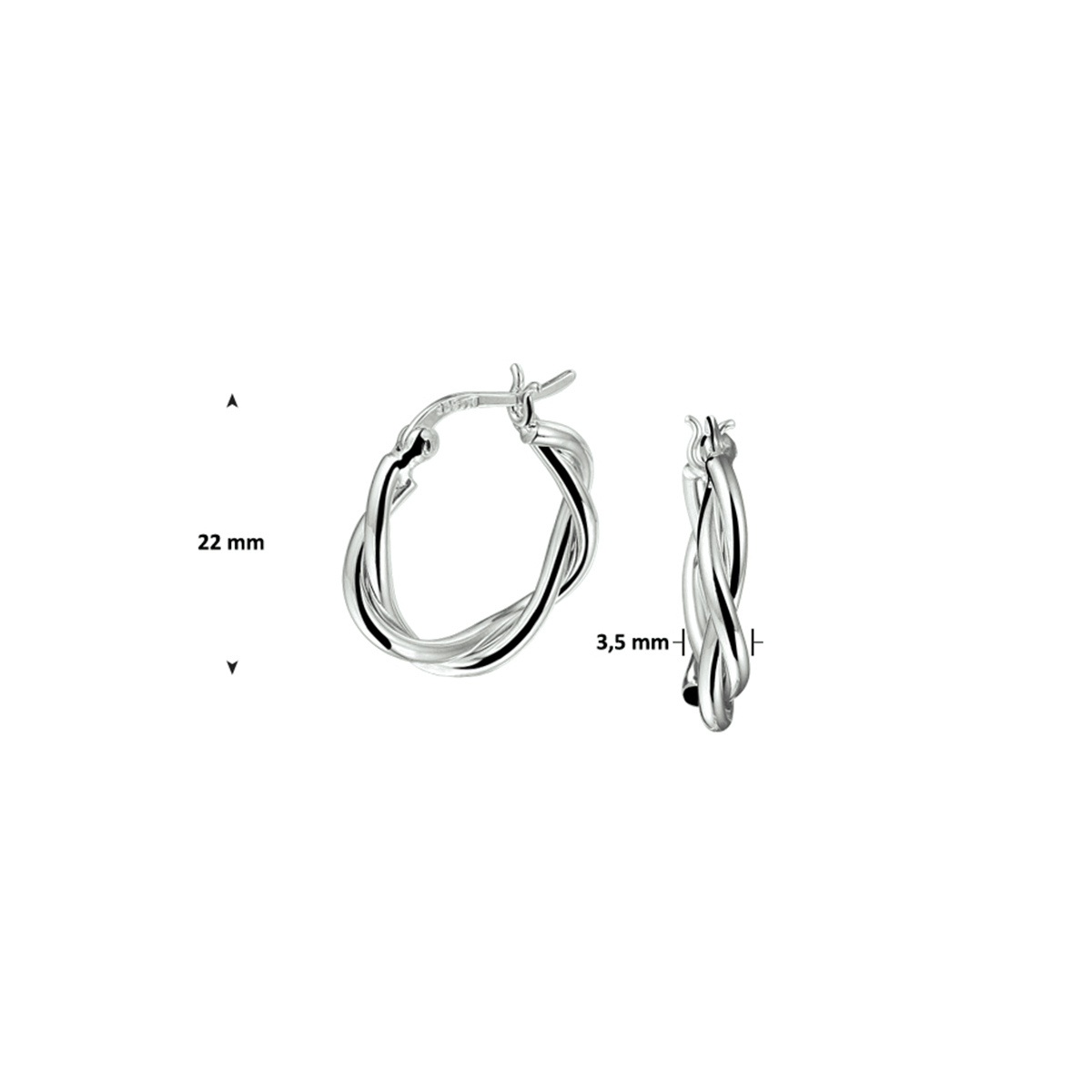 Klassieke gerhodineerd zilveren creolen met een afmeting van 22x3.5mm uitgevoerd met twee om elkaar gedraaide buizen en een stevige scharnier sluiting.