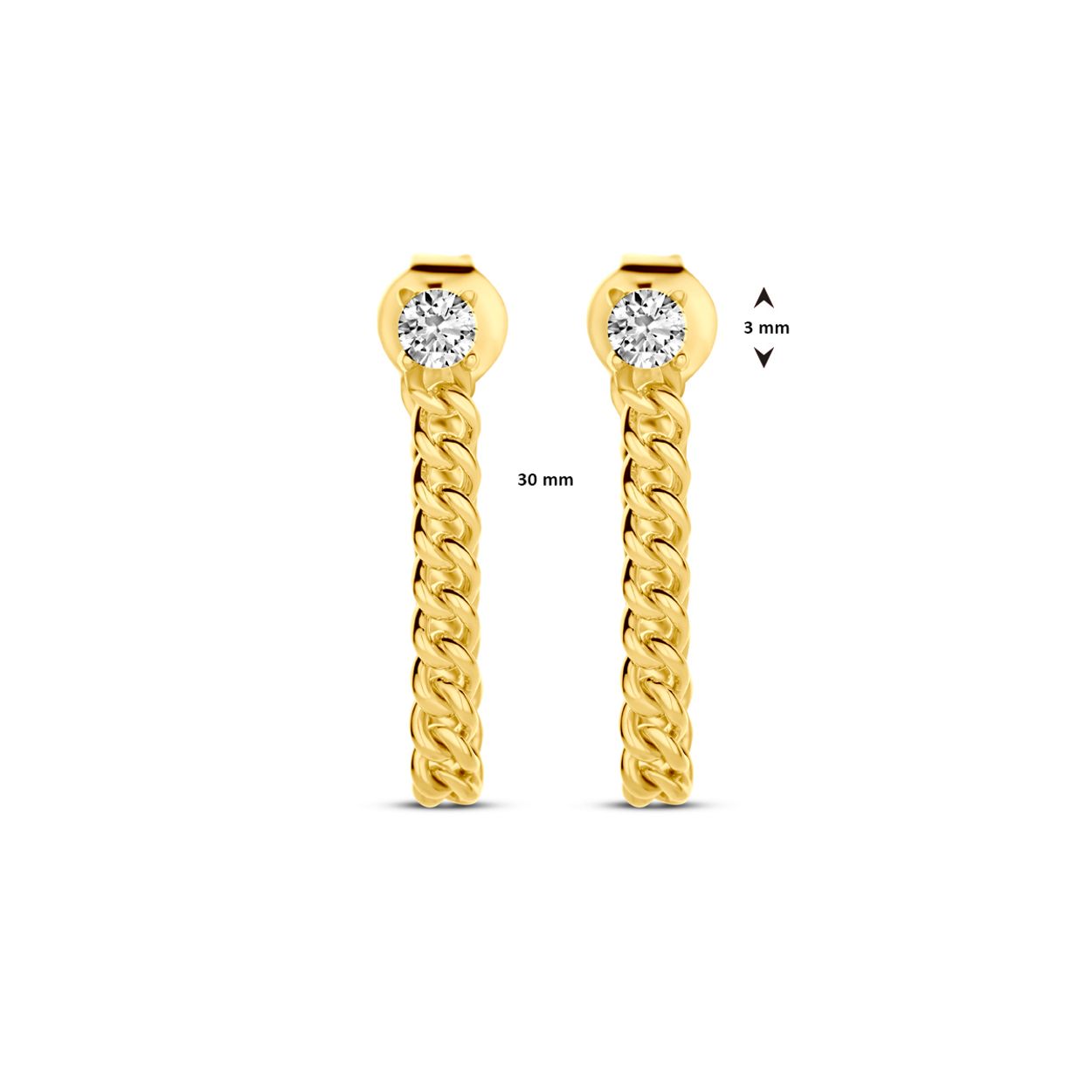 Geelgoud op 925 zilveren oorknoppen uitgevoerd met zirkonia. De oorknoppen hebben een diameter van 3mm. Geen garantie op plating.