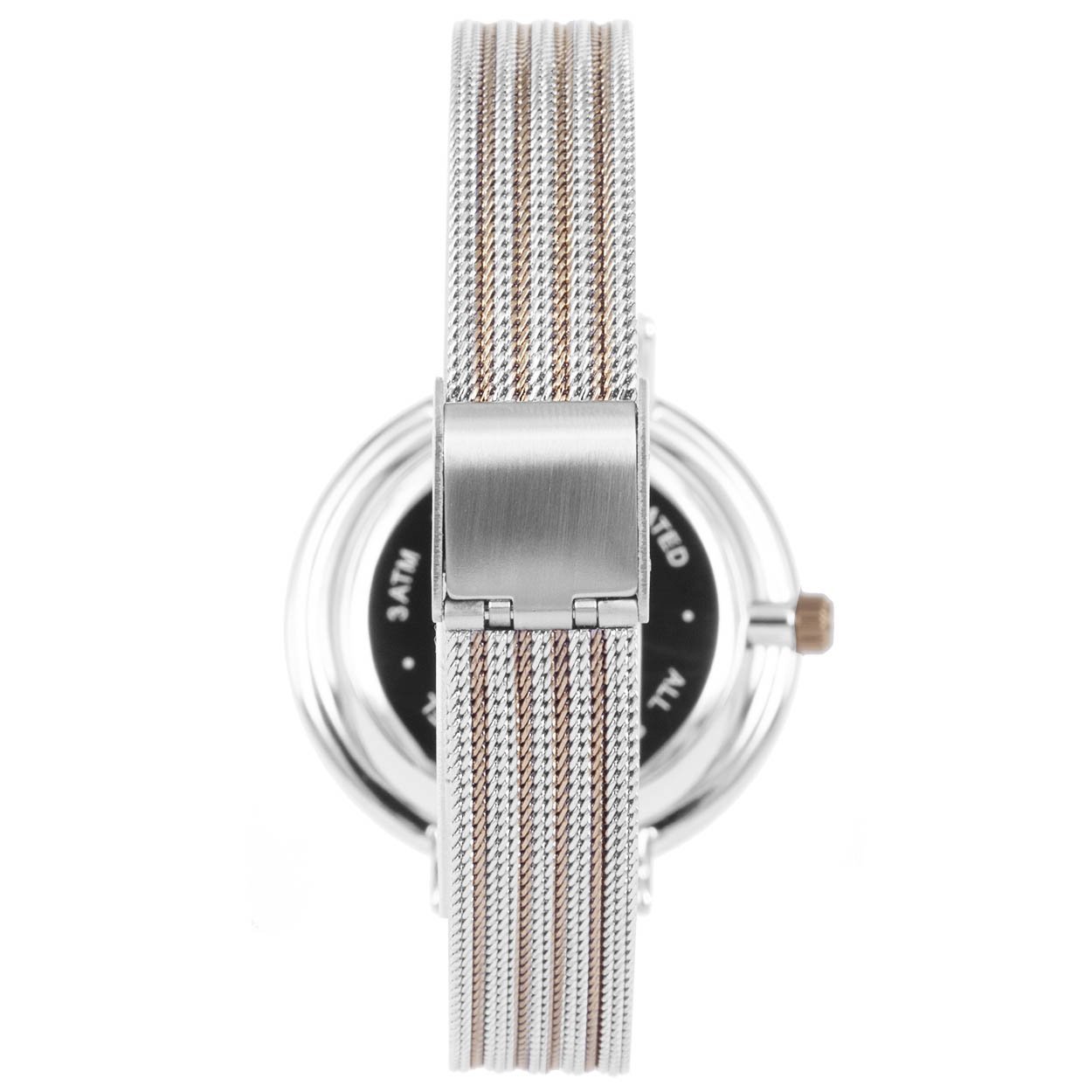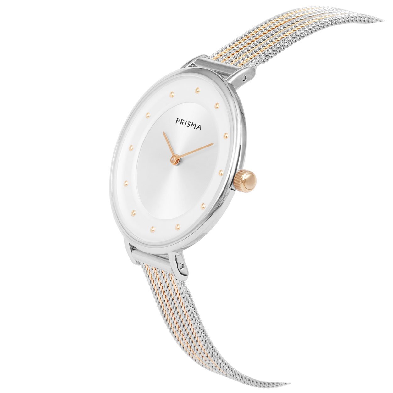 - wijzerplaat zilver met roségoudkleurige puntjes