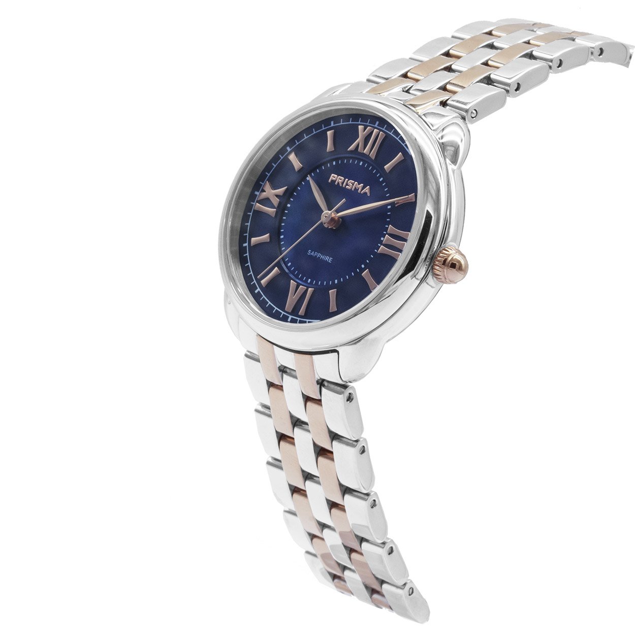 - wijzerplaat parelmoer gekleurd met roségoudkleurige romeinse cijfers