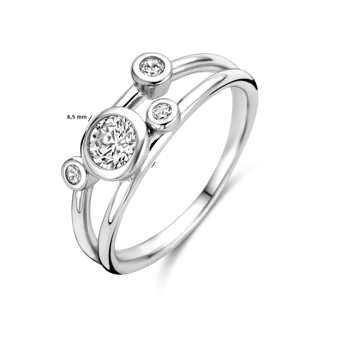 Gerhodineerd 925 zilveren ring uitgevoerd met zirkonia. De ring heeft een breedte van 6.5mm.