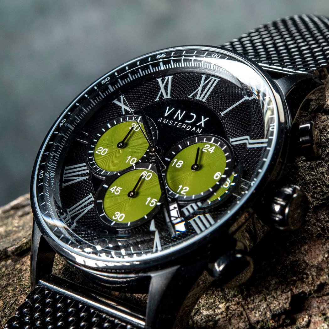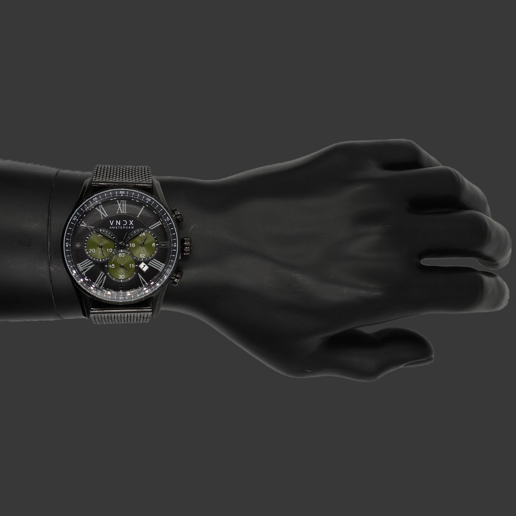 De gevarieerde zwart groene wijzerplaat is voorzien van een stopwatch, een datum aanduiding en een 24-uurs klok. Zo is The Boss net als zijn naam een allrounder. Door zijn tijdloze Romeinse index, straalt de klasse ervan af.