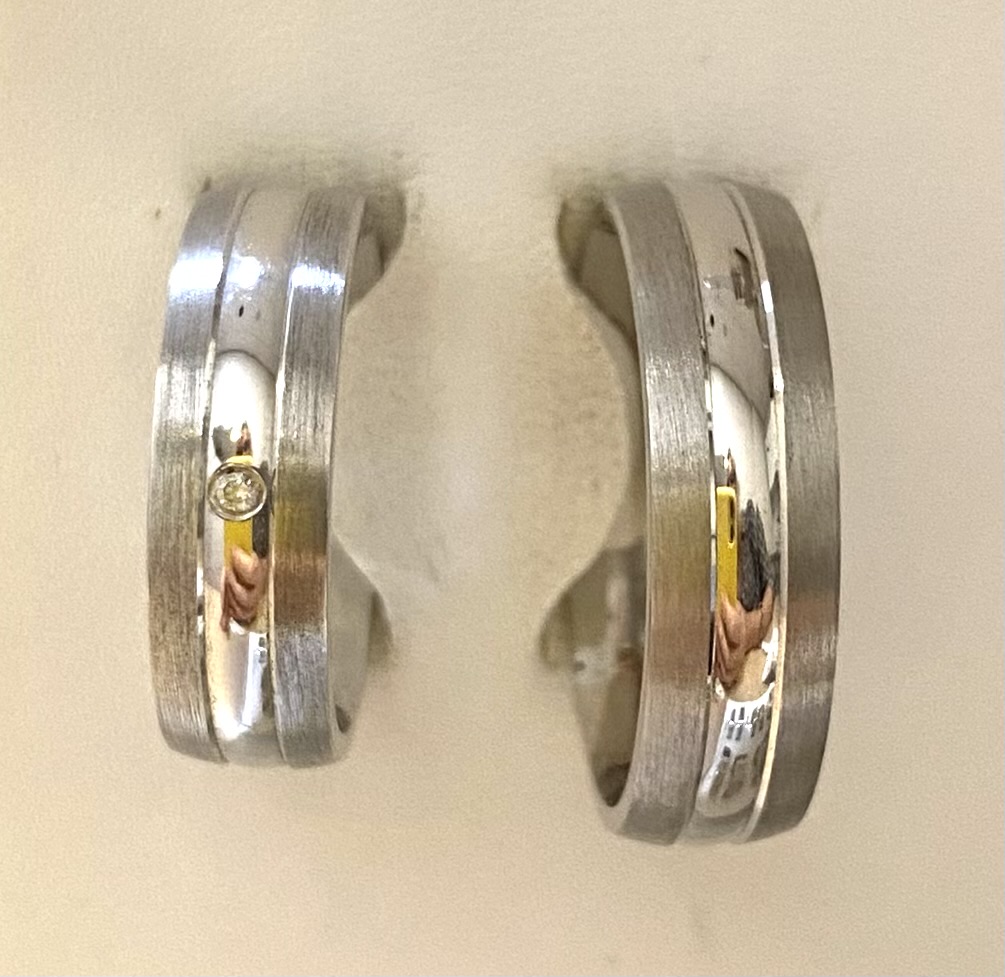Zilv damesring buitenste 2 banen mat, binnenbaan poly . 1x zirkonia