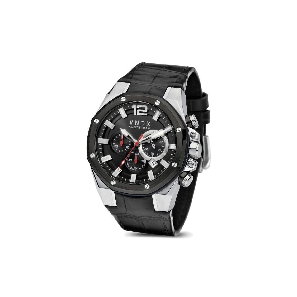 Dit is een prachtig horloge van VNDX. De band is gemaakt van leder.