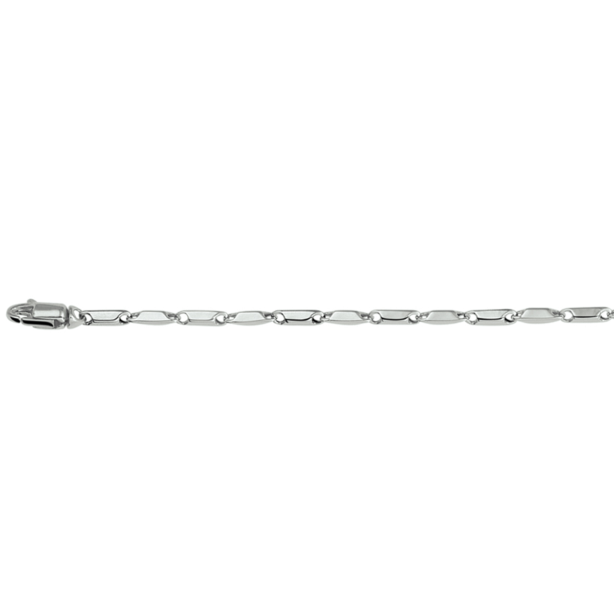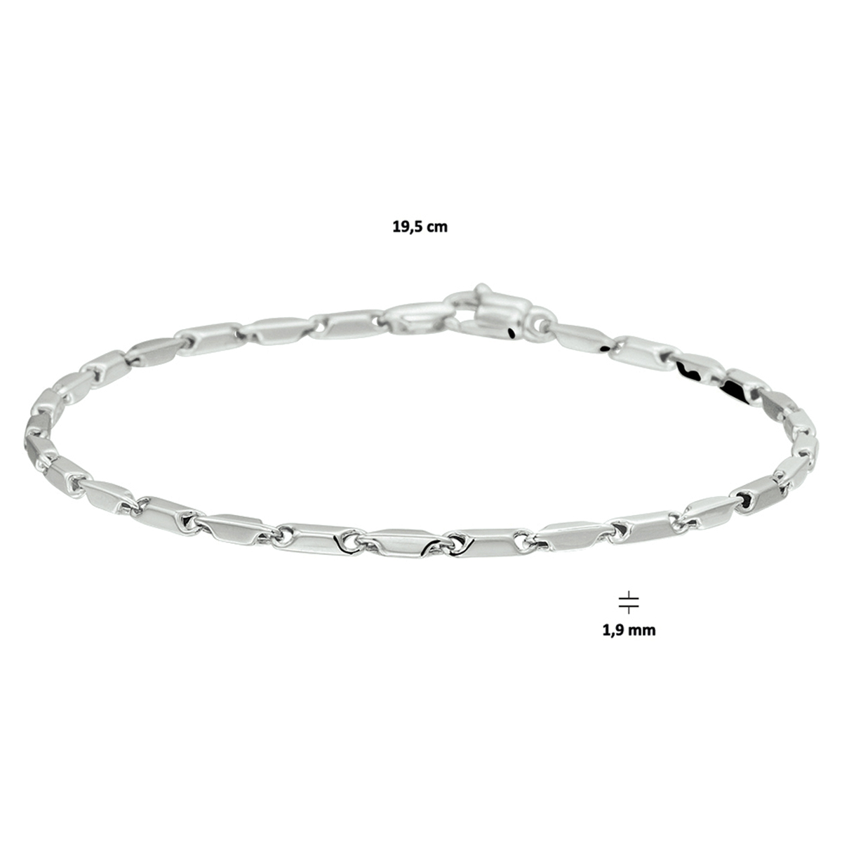 Witgouden armband van 1.9mm breed met een lengte van 19.5cm. De armband heeft een fijne en schitterende aparte schakel en is uitgevoerd met een stevige karabijn sluiting.