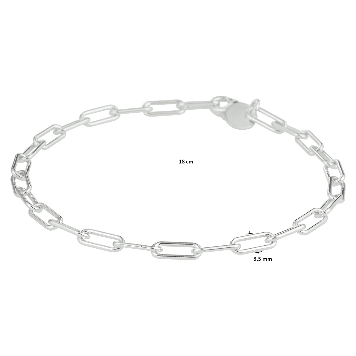Gerhodineerd 925 zilveren paperclip armband met een schakelbreedte van 3.5mm en een stevige karabijn sluiting. De armband heeft een draaglengte van 18cm.