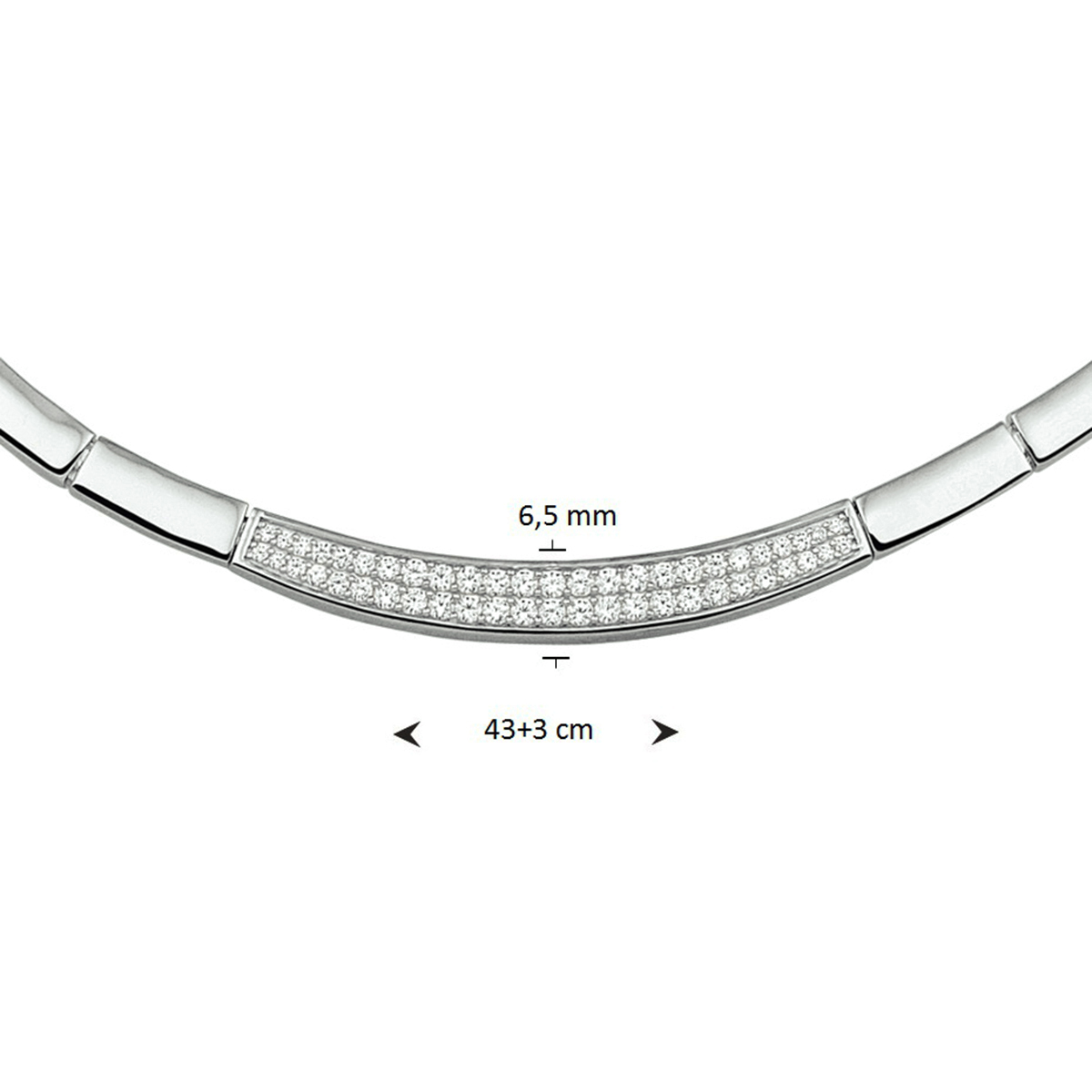 Gerhodineerd zilveren collier met een breedte van 6.5mm en een lengte van 43cm en een extensie van 3cm uitgevoerd met een luxe pave van briljant geslepen zirkonia.