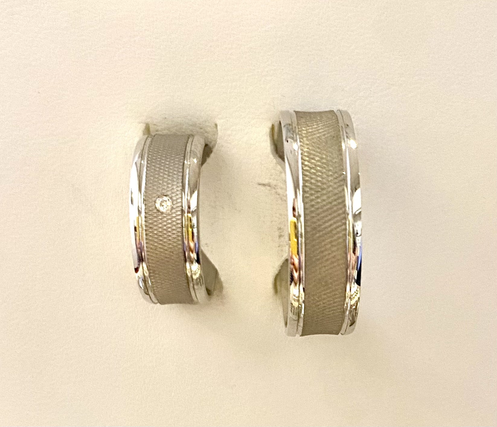 Zilver relatiering buiten banen poly, middenbaan bewerkt ruitjes-achtig mat. 1x zirkonia.