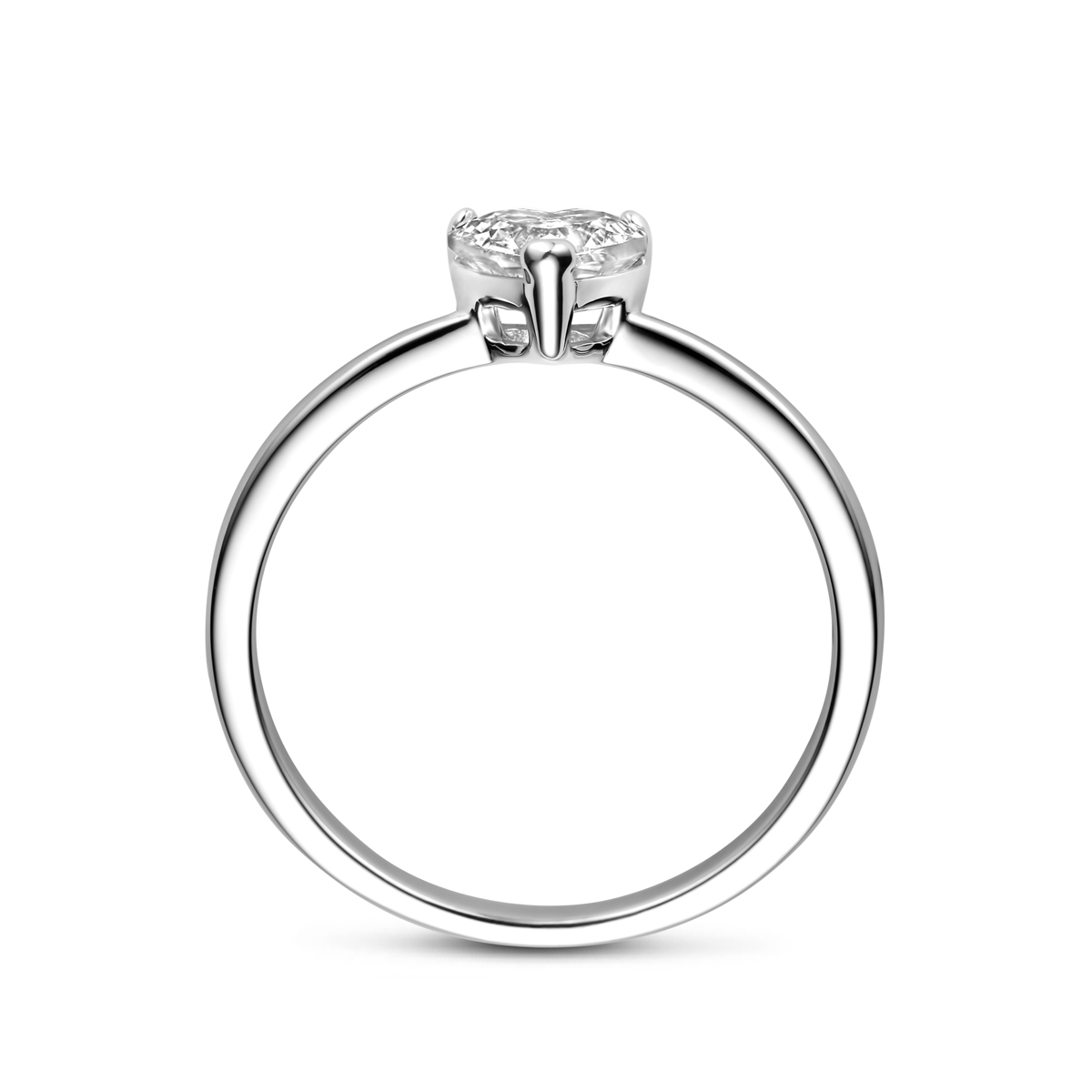 Gerhodineerd 925 zilveren ring uitgevoerd met een hartje zirkonia. De ring heeft een afmeting van 6.5x6mm.