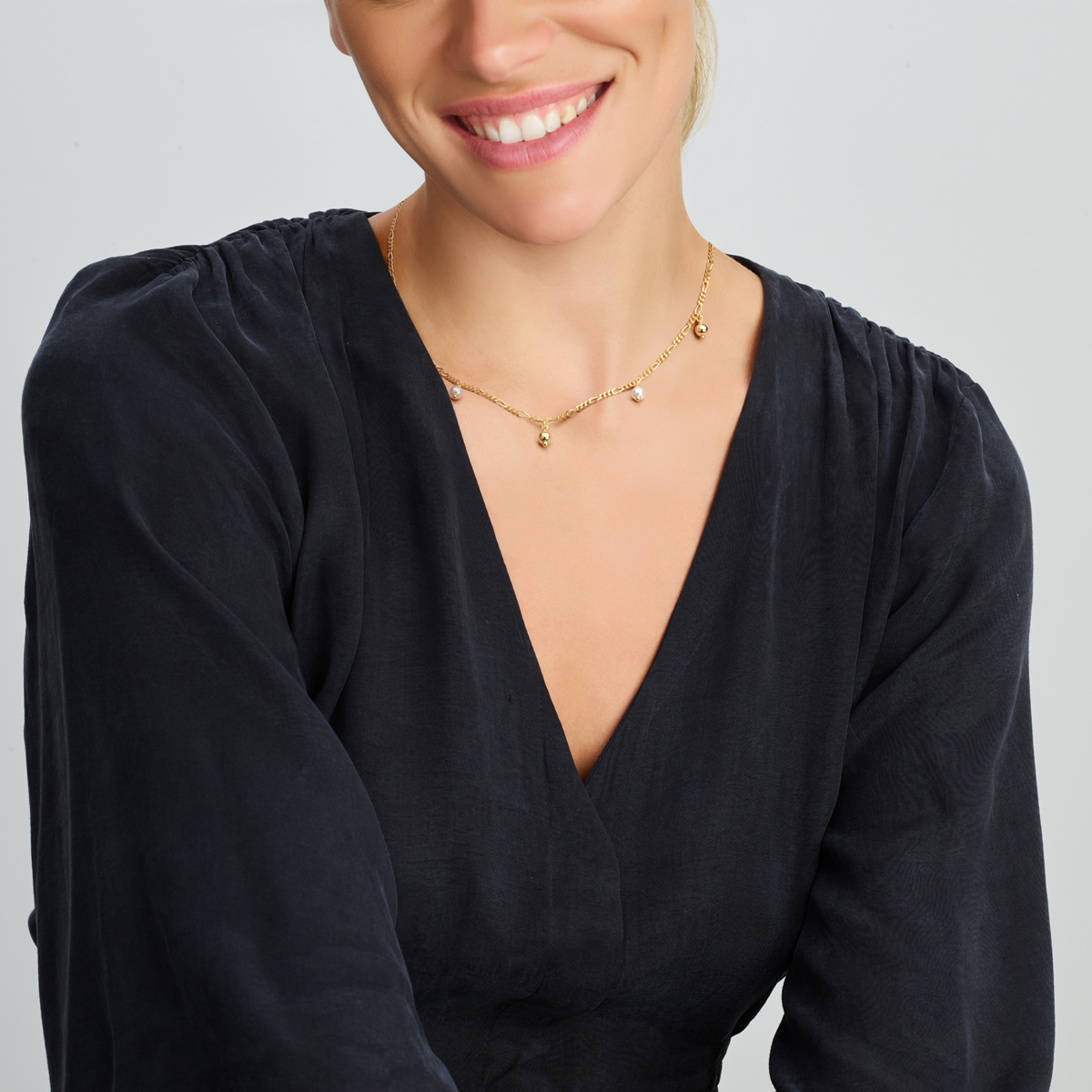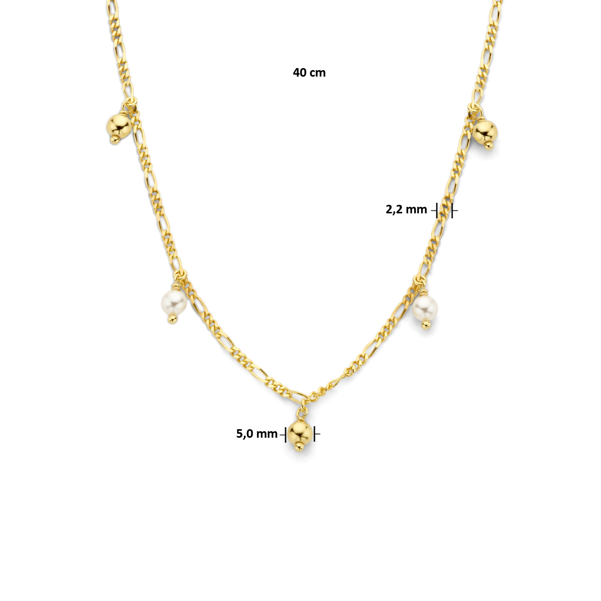 Geelgoud op 925 zilveren collier uitgevoerd met zoetwaterparels. Het collier heeft een draaglengte van 40cm en een stevige karabijn sluiting. Geen garantie op plating