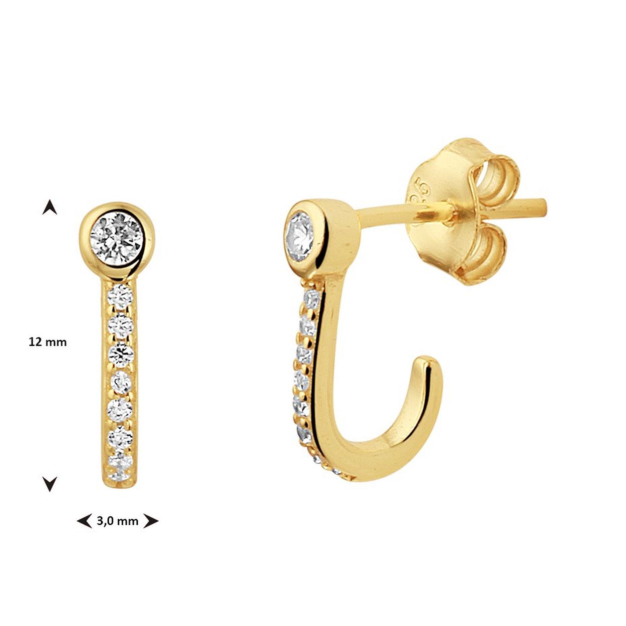 Geelgoud op 925 zilveren oorknoppen uitgevoerd met een schitterende zirkonia rij. De oorknoppen hebben een afmeting van 12x3mm.